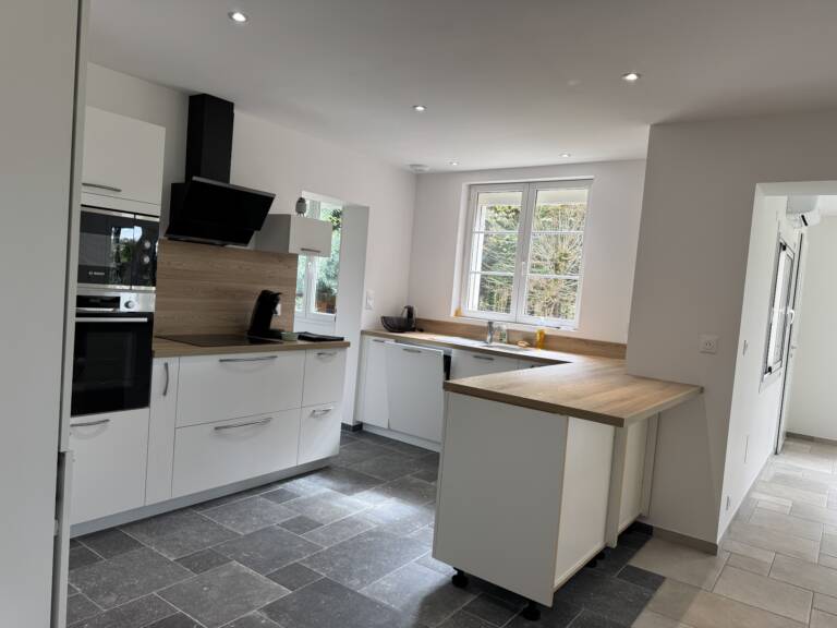 Le résultat final illustre parfaitement la transformation de cette maison : des espaces ouverts et lumineux, et un confort de vie amélioré grâce aux nouvelles installations énergétiques. Entre esthétique, fonctionnalité et performance, cette rénovation allie harmonieusement modernité et qualité d’exécution.