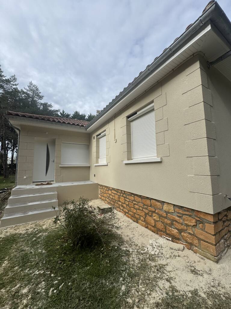 Les travaux se sont ensuite poursuivis à l’extérieur avec le ravalement des façades, permettant de rénover l’aspect du bâtiment et d’assurer sa protection dans le temps. La toiture du garage a également fait l’objet d’une rénovation complète, accompagnée du remplacement des menuiseries extérieures.