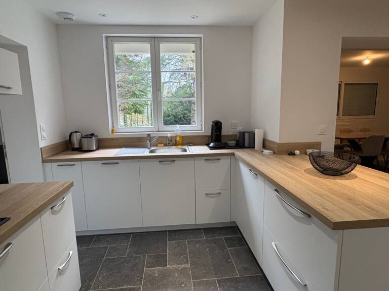 La maison présentait une configuration agréable mais manquait d’espace et de modernité. Les propriétaires souhaitaient agrandir leur surface habitable tout en repensant la cuisine et le séjour pour créer un lieu de vie plus lumineux, ouvert et convivial. L’objectif du projet était donc d’aménager une nouvelle terrasse extérieure et de moderniser l’ensemble des pièces de vie.