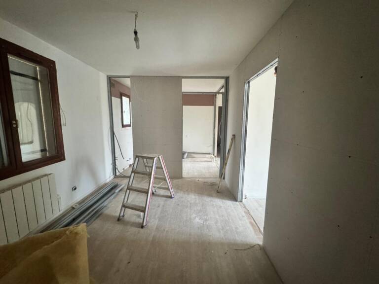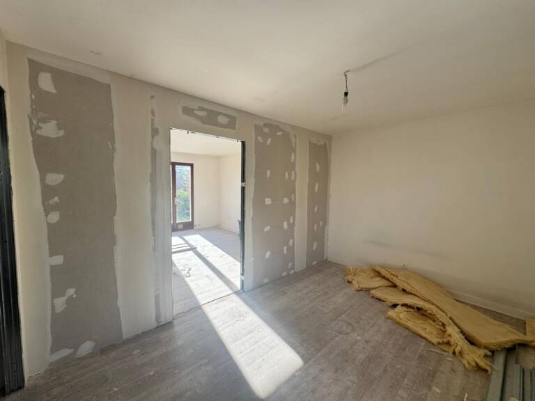 Les premières étapes ont consisté à intervenir sur les espaces intérieurs et les équipements existants afin d’améliorer le confort du logement. Les sols des chambres ont été repris pour accueillir de nouveaux revêtements, offrant une base saine et homogène.